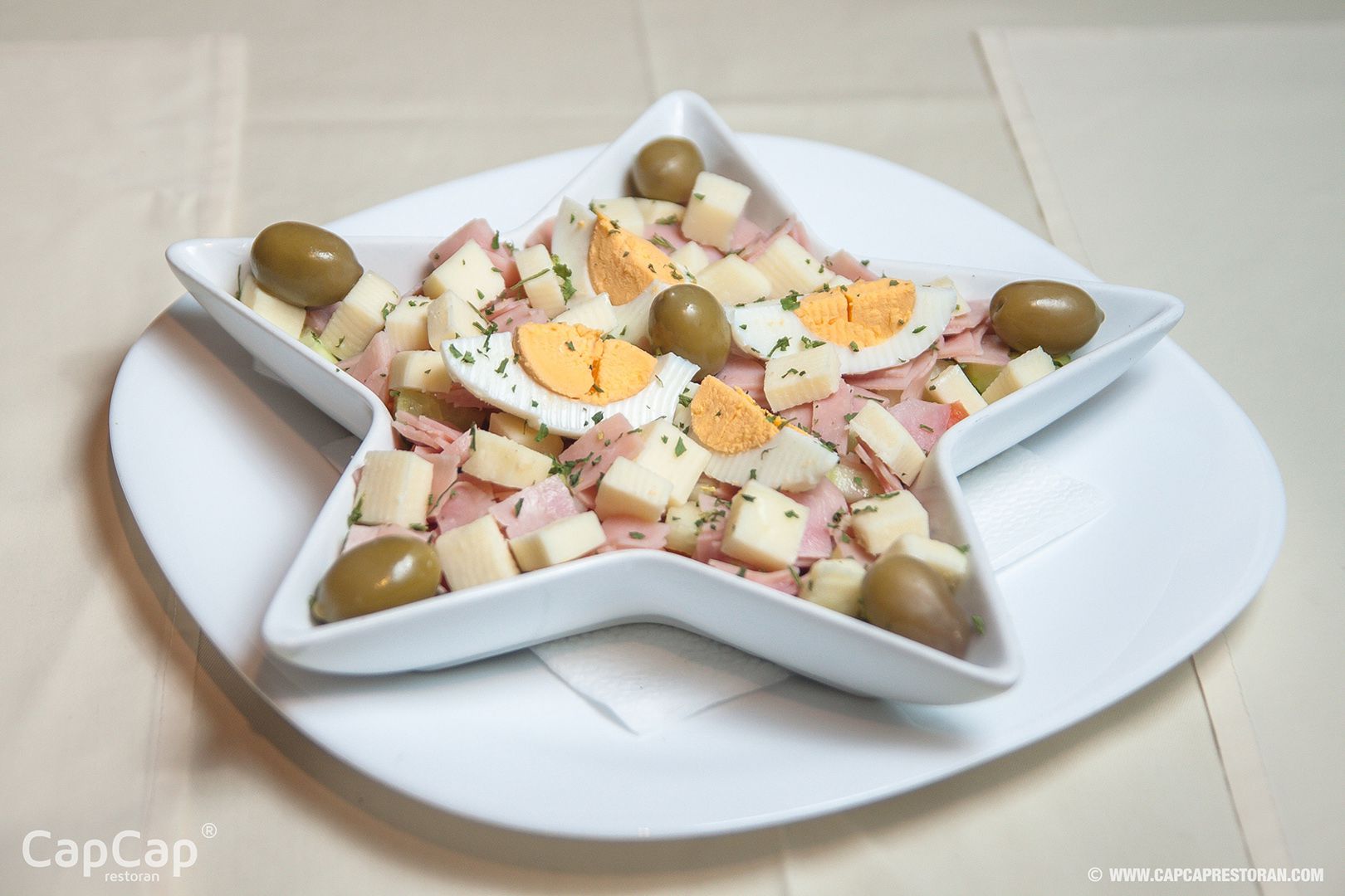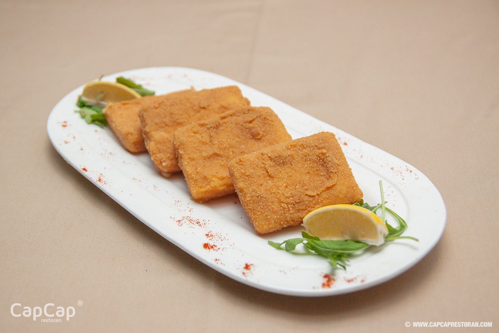 Kačkavalj, jaja, prezla, tartar sos, dekoracija
