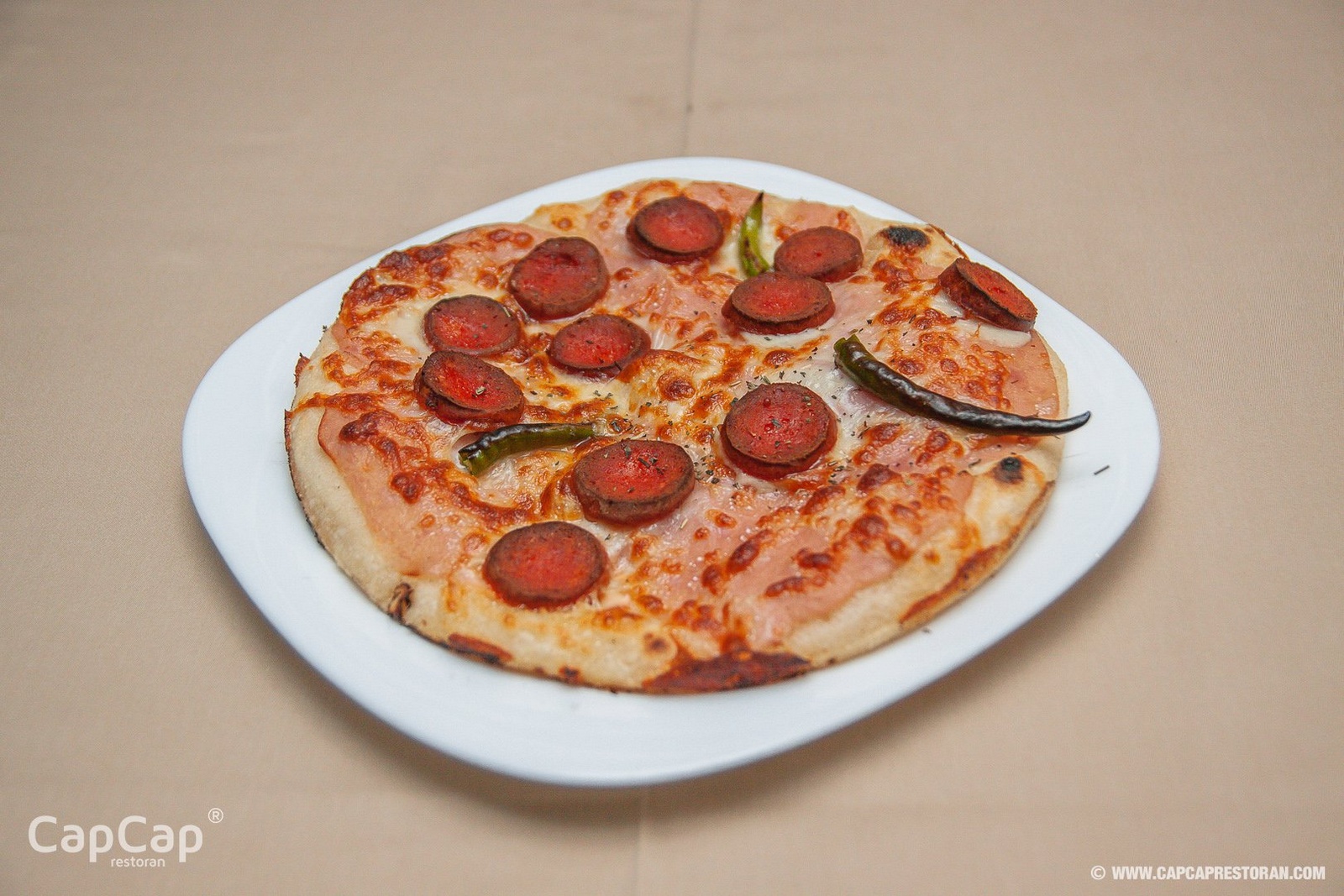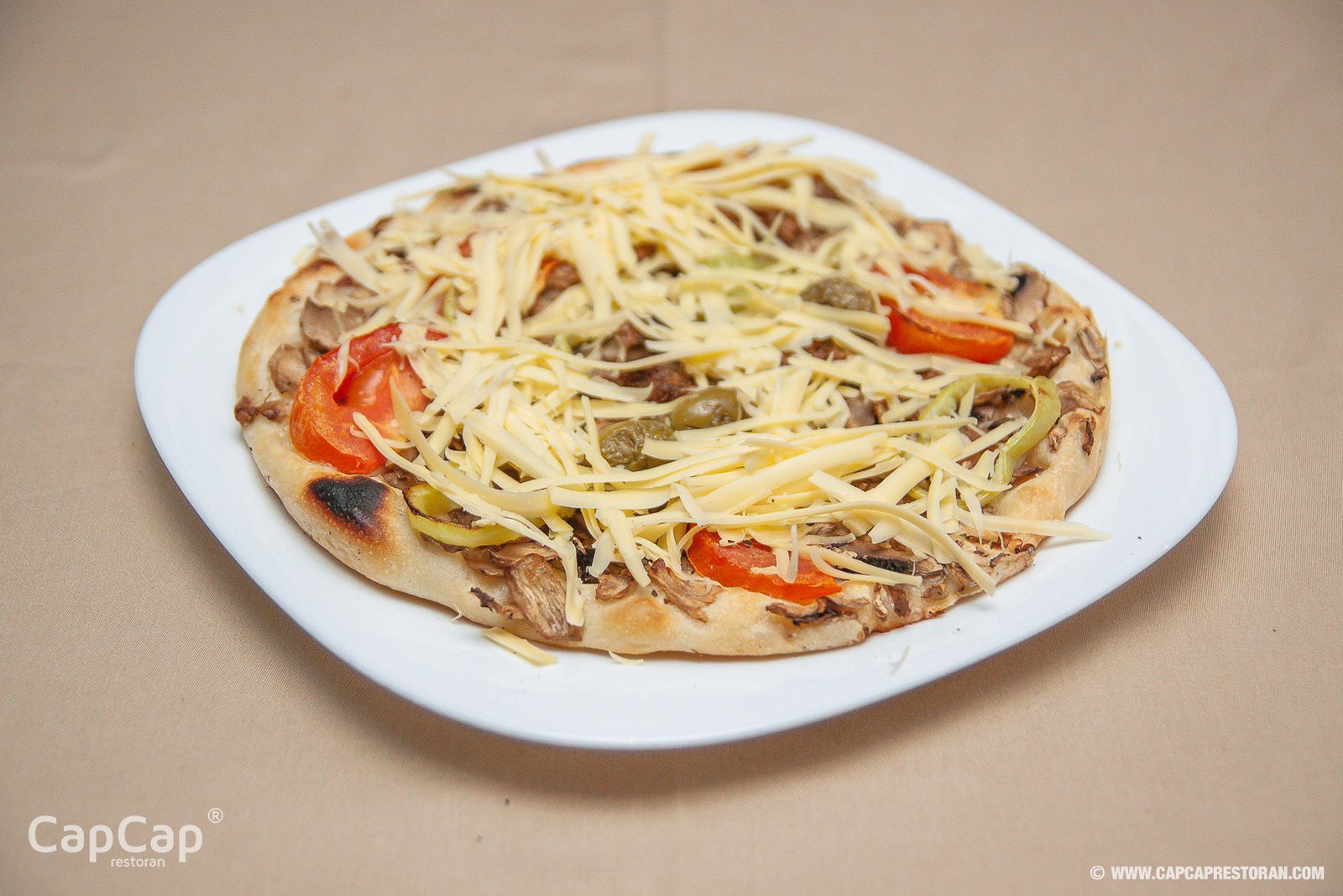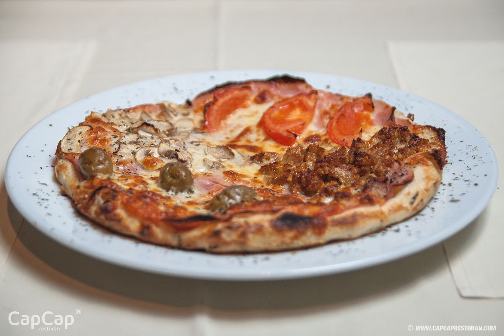 bela: dimljena slanina, pavlaka, šunka, parmezan, beli luk crvena: sos od paradajza, dimljena slanina, jaje, parmezan