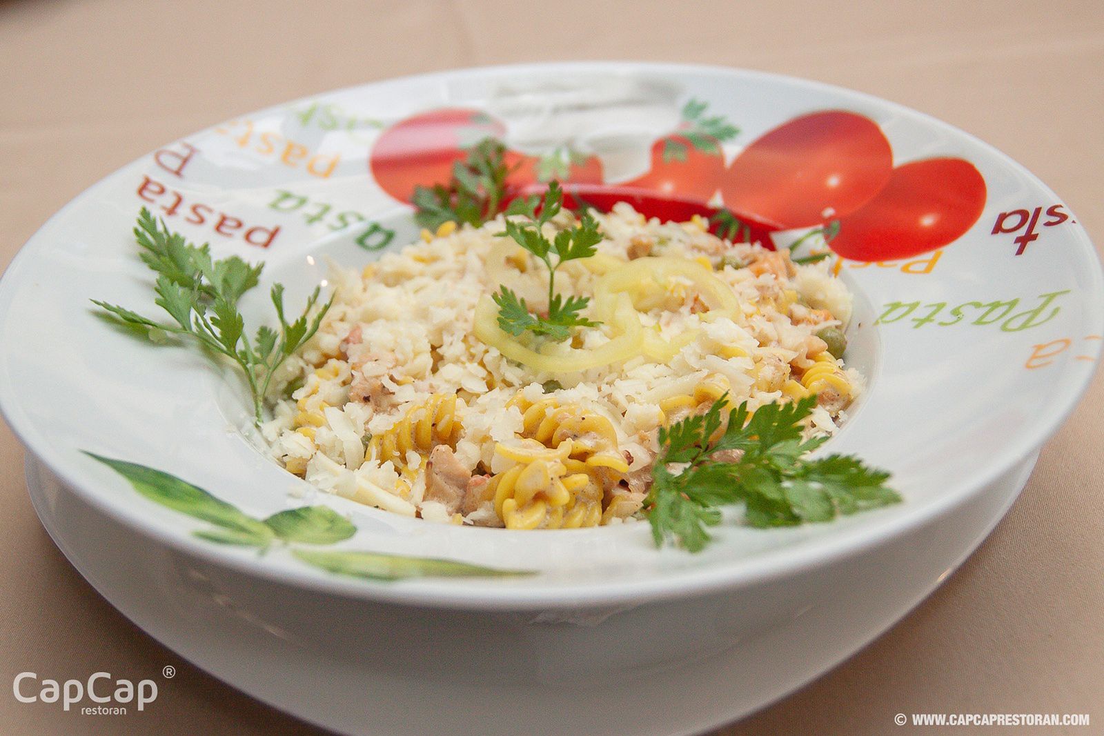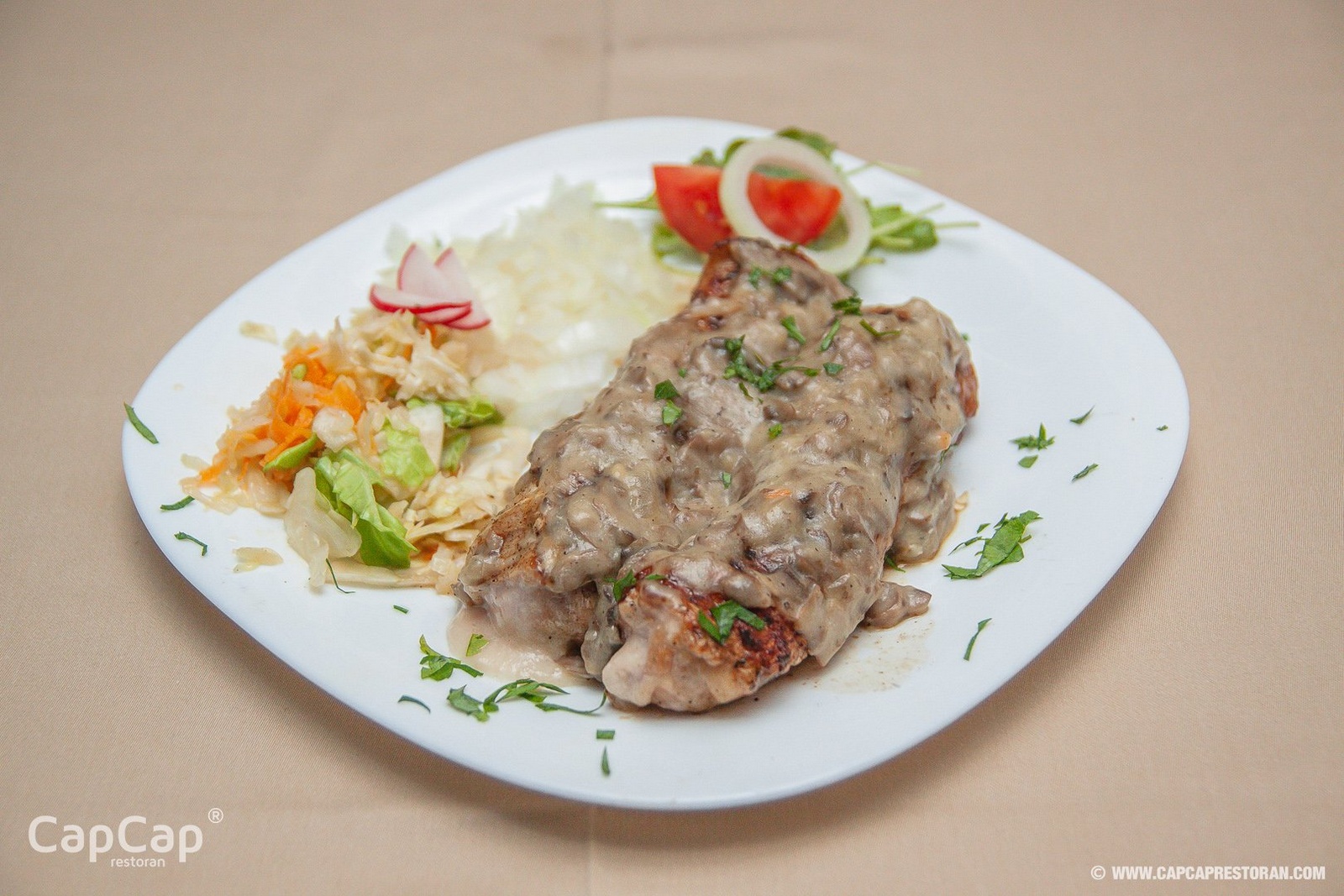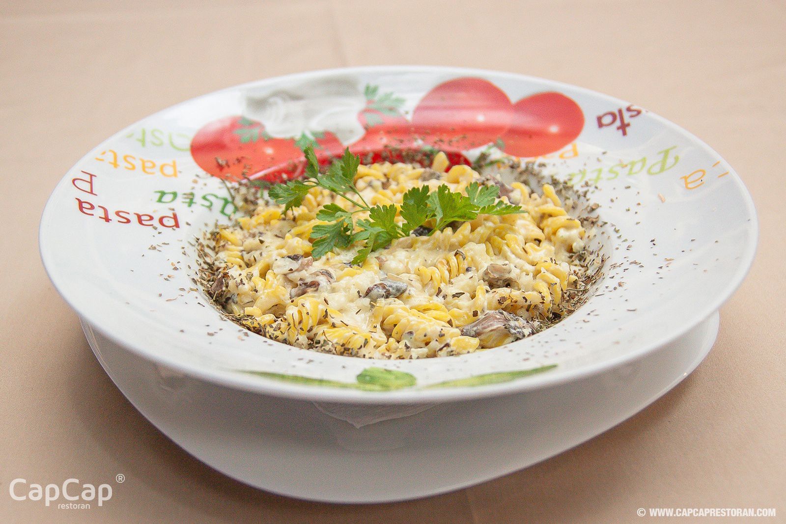 Pavlaka, luk, pečurke, sos pasto genoveze
