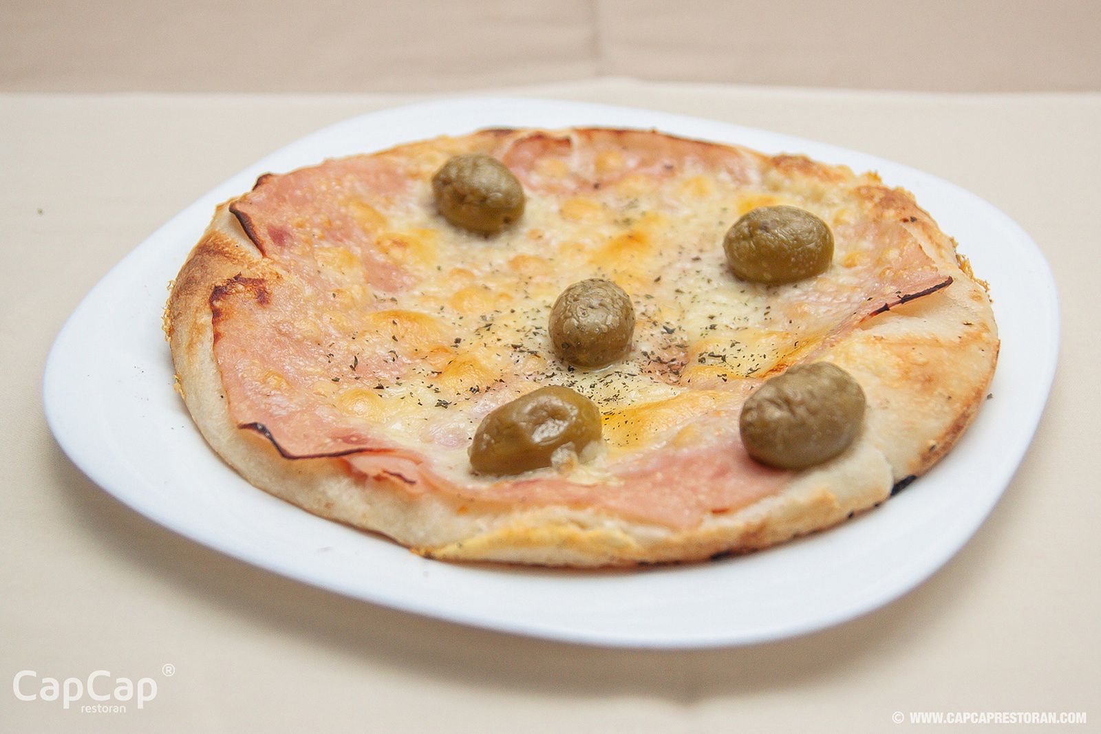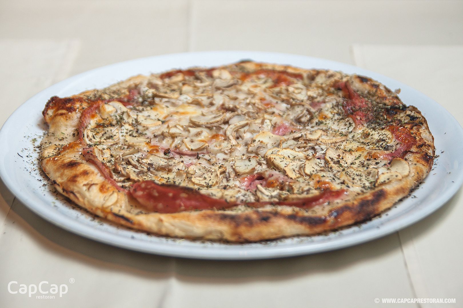 šunka, kačkavalj, šampinjoni, bešamel sos