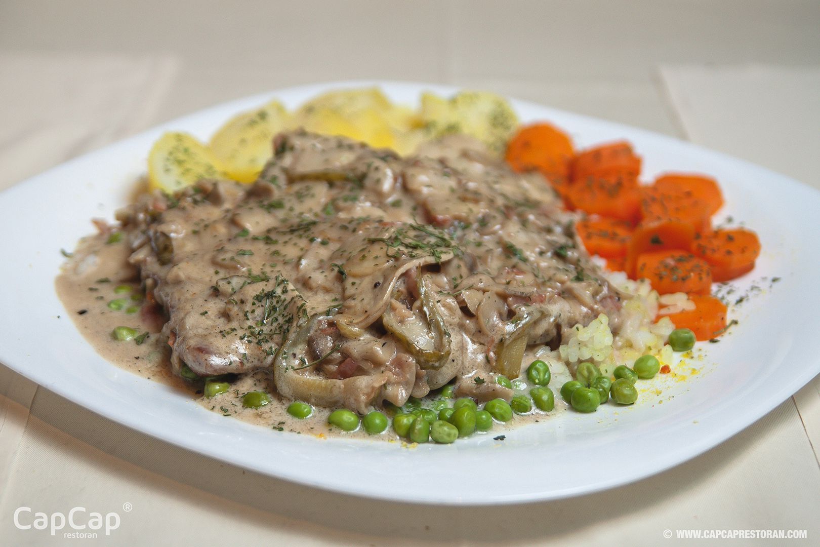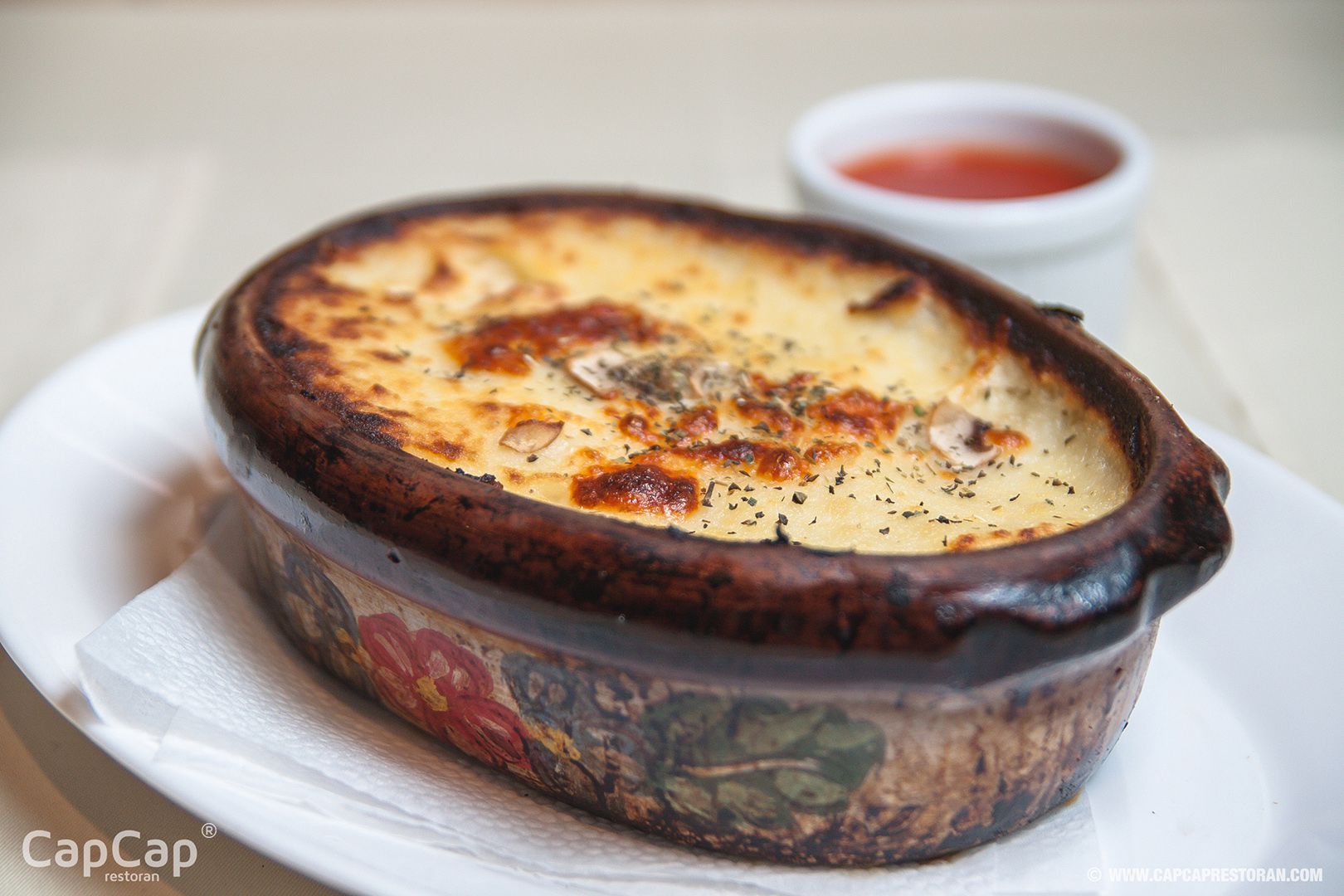 piletina, pečurke, pavlaka, kačkavalj, bešamel sos